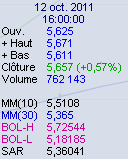 Analyses graphique et technique des valeurs à partir de leurs cours "fin de journée" ou "intraday".