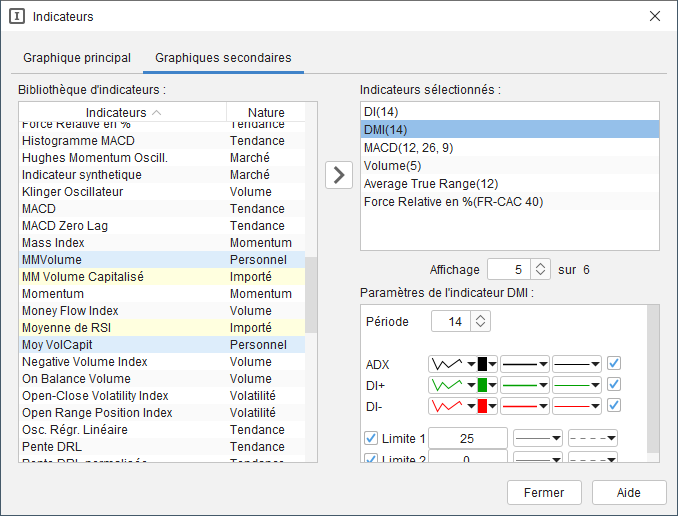 Axial Finance dispose d'une bibliothèque de nombreux indicateurs techniques pré-programmés et totalement paramétrables.