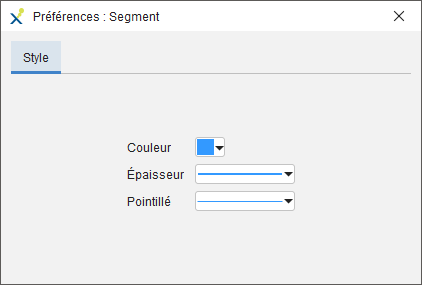 Cliquer avec le bouton droit de la souris pour ouvrir le menu contextuel et choisir l'option pour ouvrir la fenêtre de dialogue ci-dessous. Cette fenêtre permet de modifier la couleur l'épaisseur du trait et le type de pointillé.